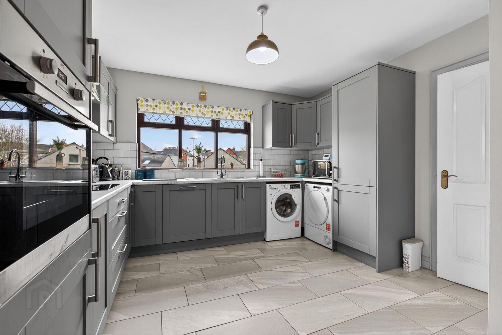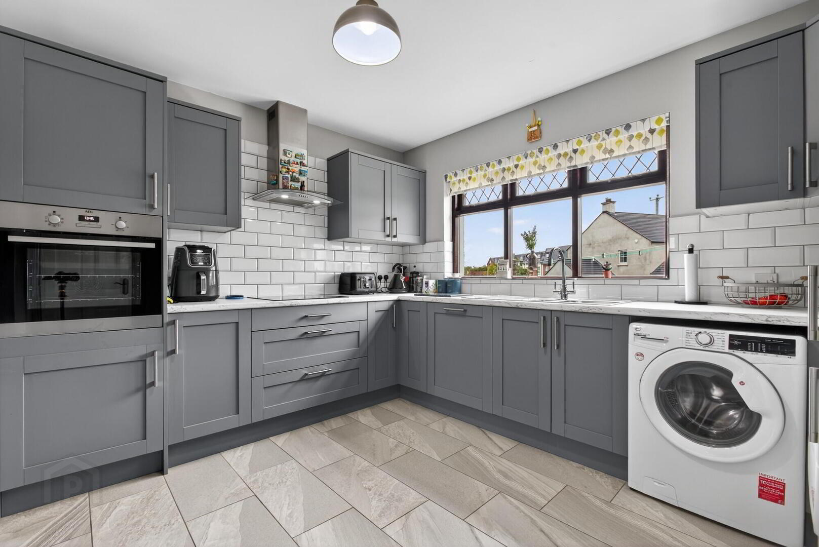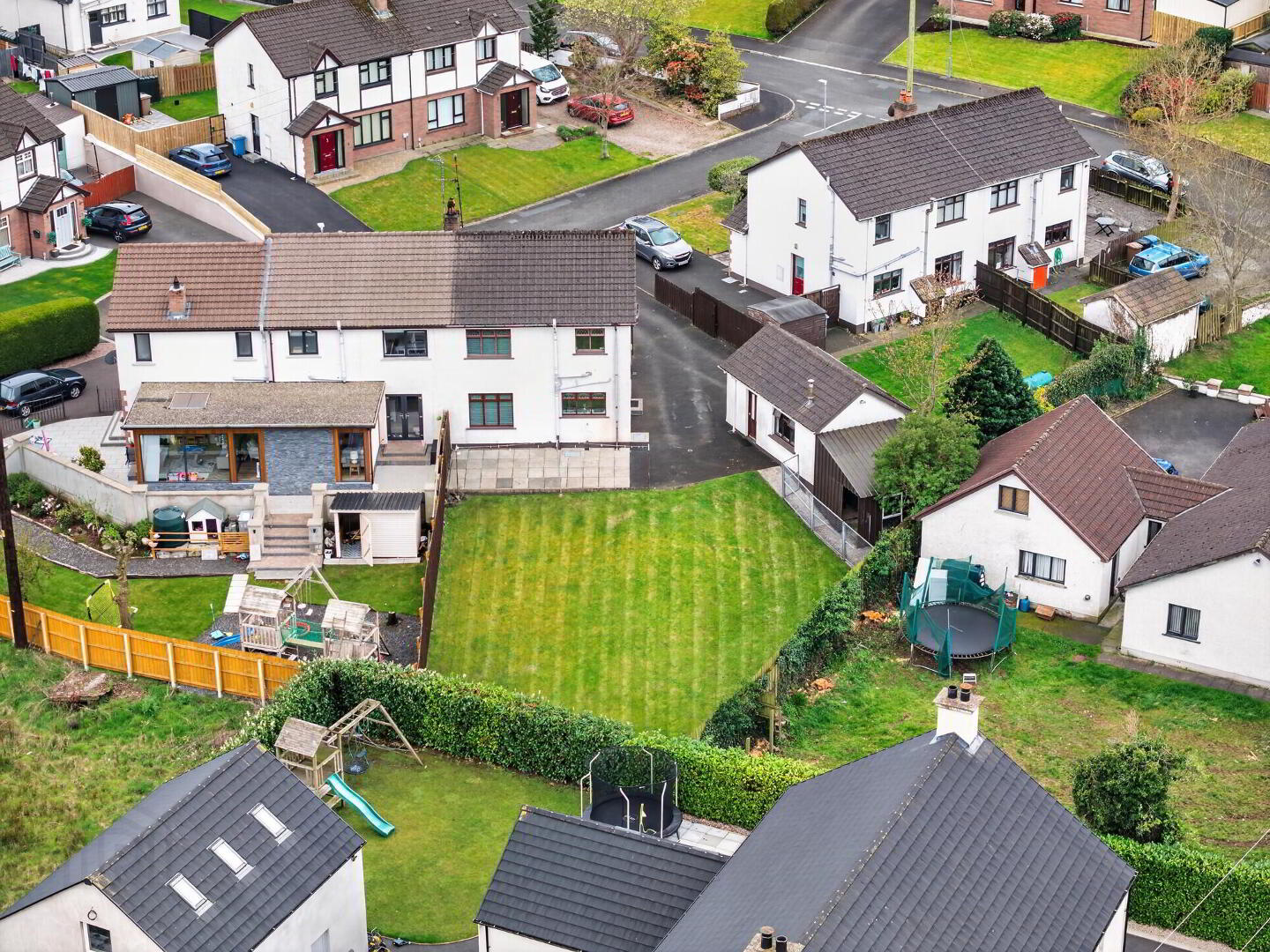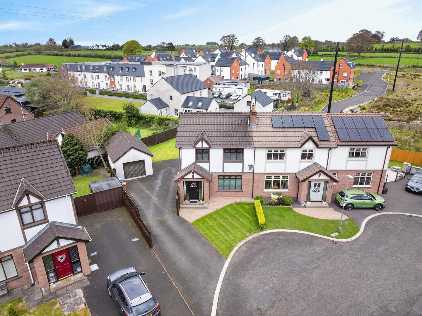 A beautifully presented semi detached house and garage on a large corner site in a small quiet cul-de-sac in the Grange Development just off Ballyheifer Road and convenient to the centre of Magherafelt and all schools and amenities. The property has been very well maintained and is in excellent condition and decorative order throughout. It has a detached garage, tarmac driveway with generous off street parking and a large private garden to the rear.