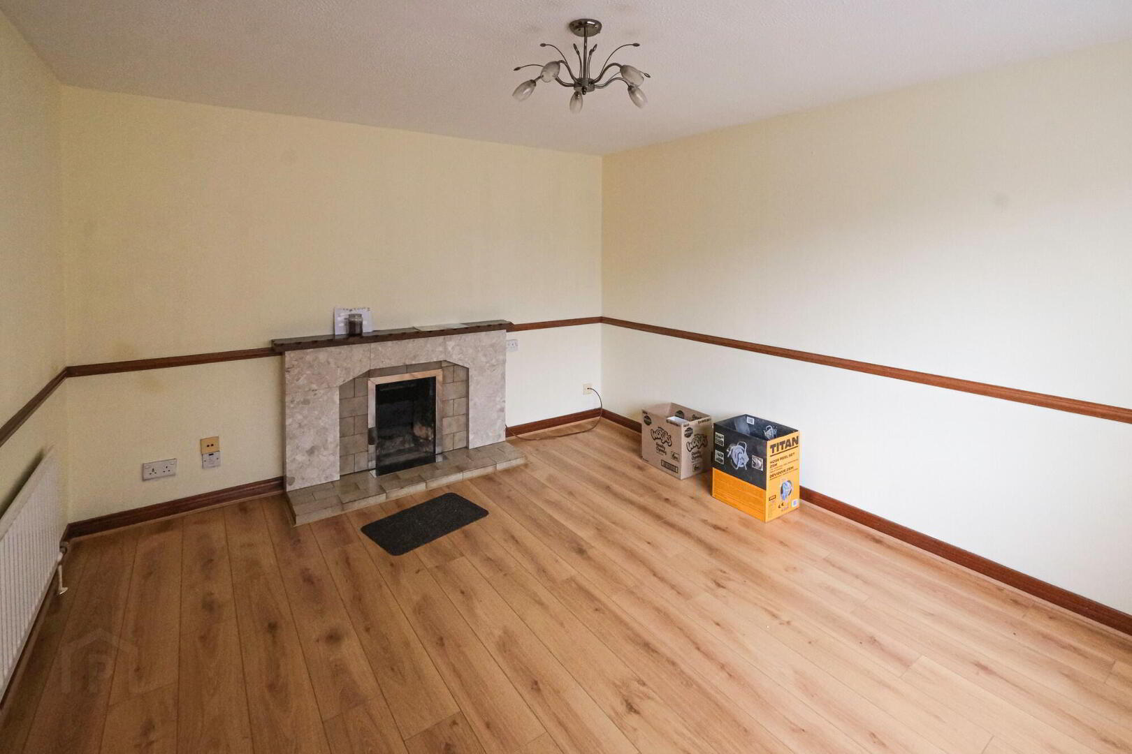 To front. Fireplace. Wooden floor. Tv point.