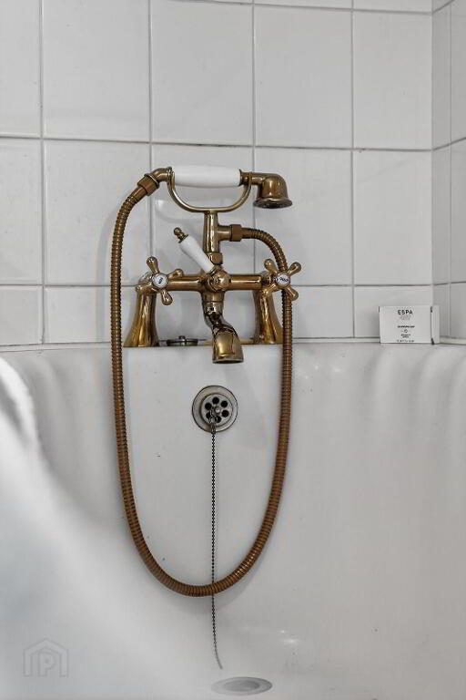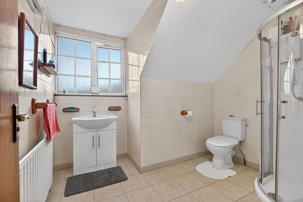 - Wash hand basin. WC. Separate shower. Tiled walls. Tiled floor.