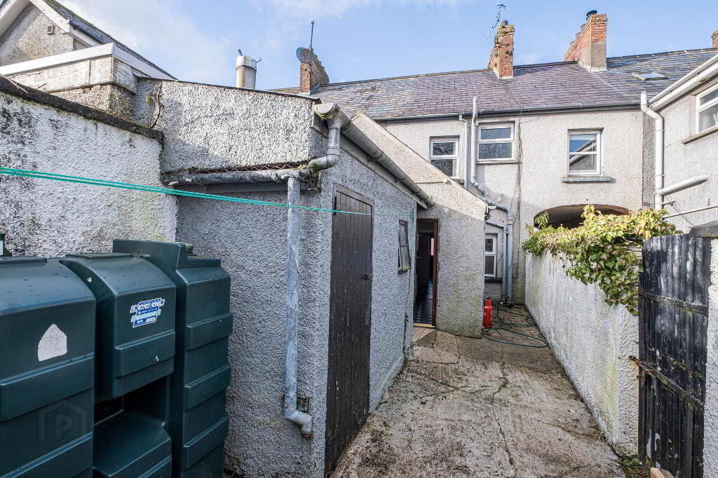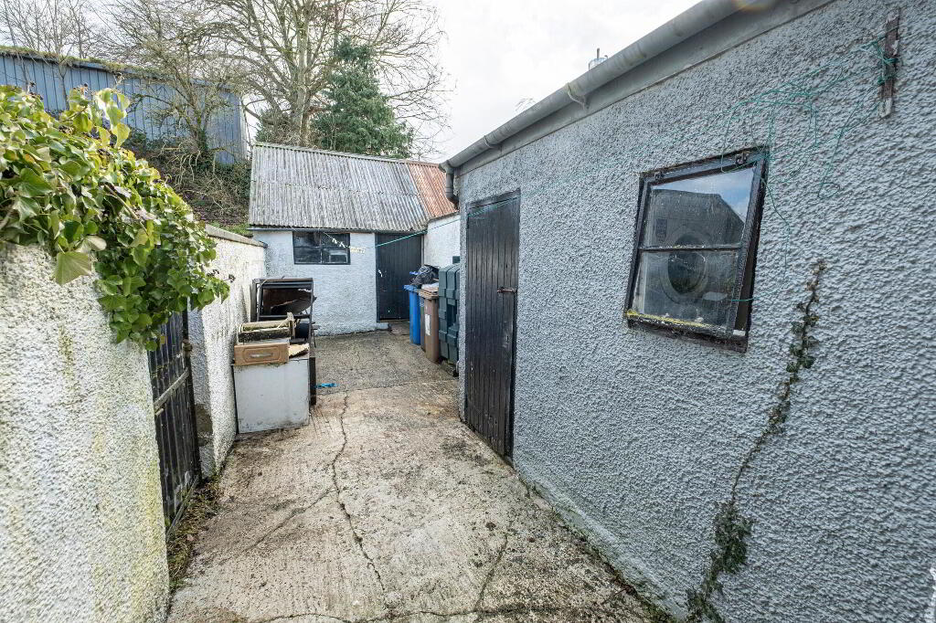 To the rear, there is a fully enclosed yard with useful outbuildings, providing additional storage space.